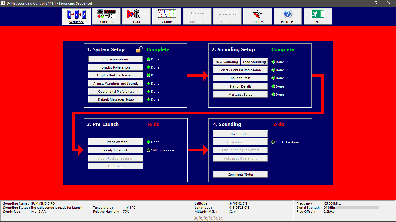 The first step was to install the D-MET software onto my laptop, so that it can interface with the tracking station which picks up the signals from the radiosonde. The software was installed from a USB and it was the latest version, which was better and more advanced than what the SA weather bureau was running to predict the weather for the entire country!